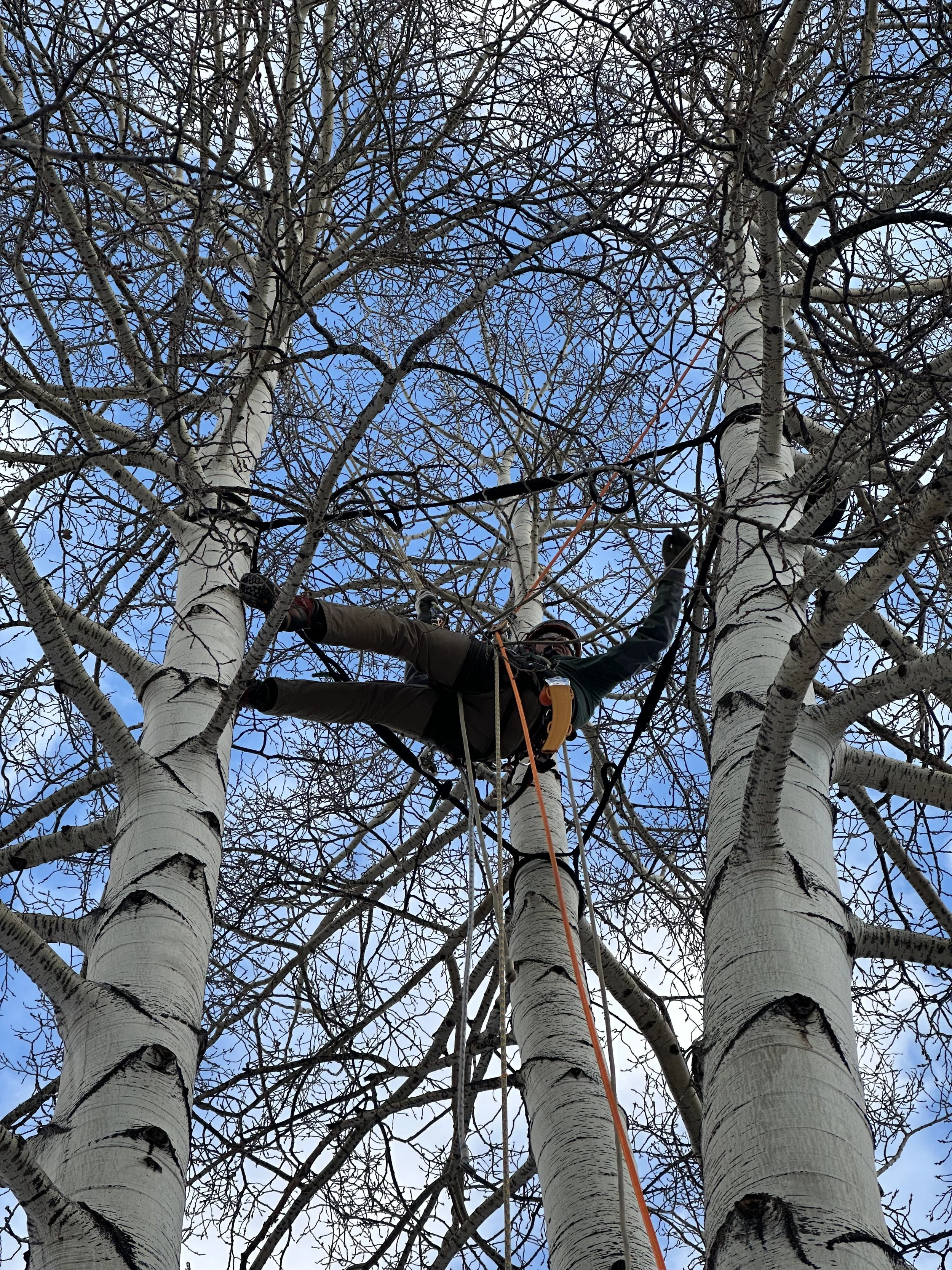 In tree rigging specialists, where the booms and bucket trucks cannot go